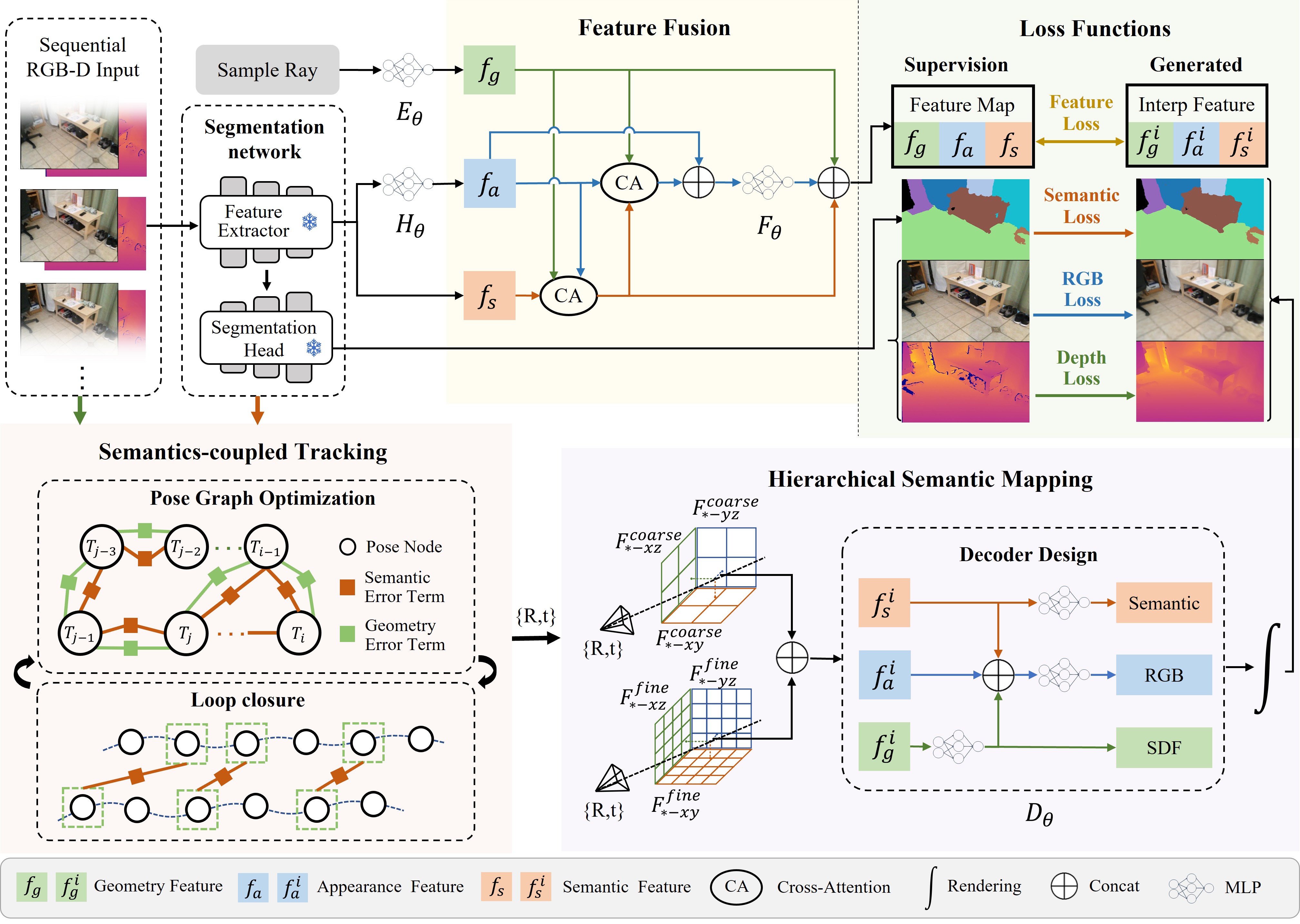We propose a tightly-coupled semantic SLAM system SNI-SLAM++ to achieve dense semantic mapping and robust tracking. We introduce hierarchical semantic encoding for precisely constructing semantic maps. We integrate geometry, appearance, and semantic features based on cross-attention to enable mutual reinforcement between different features. We design an innovative semantics-coupled tracking framework that integrates semantic constraints into pose optimization.